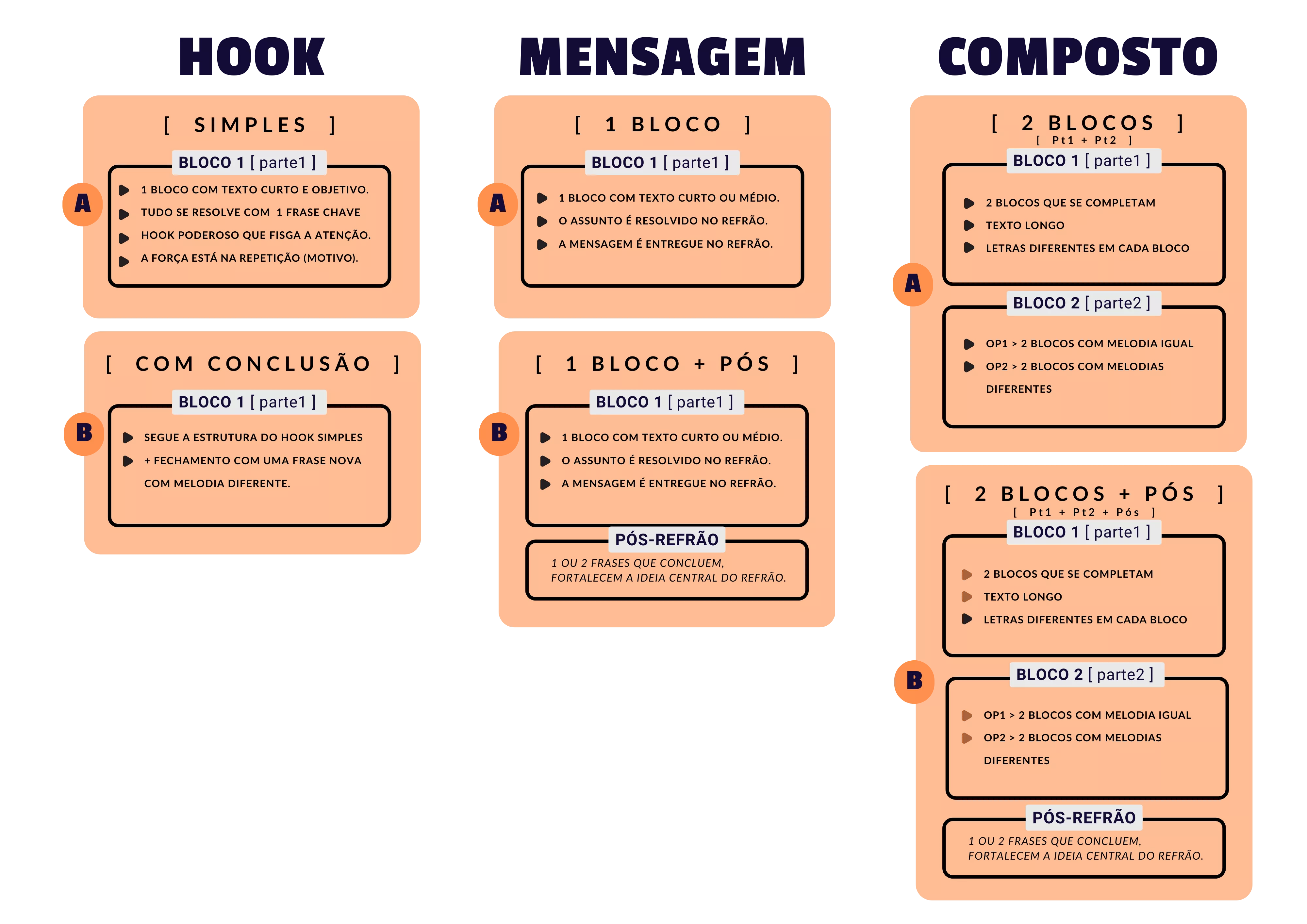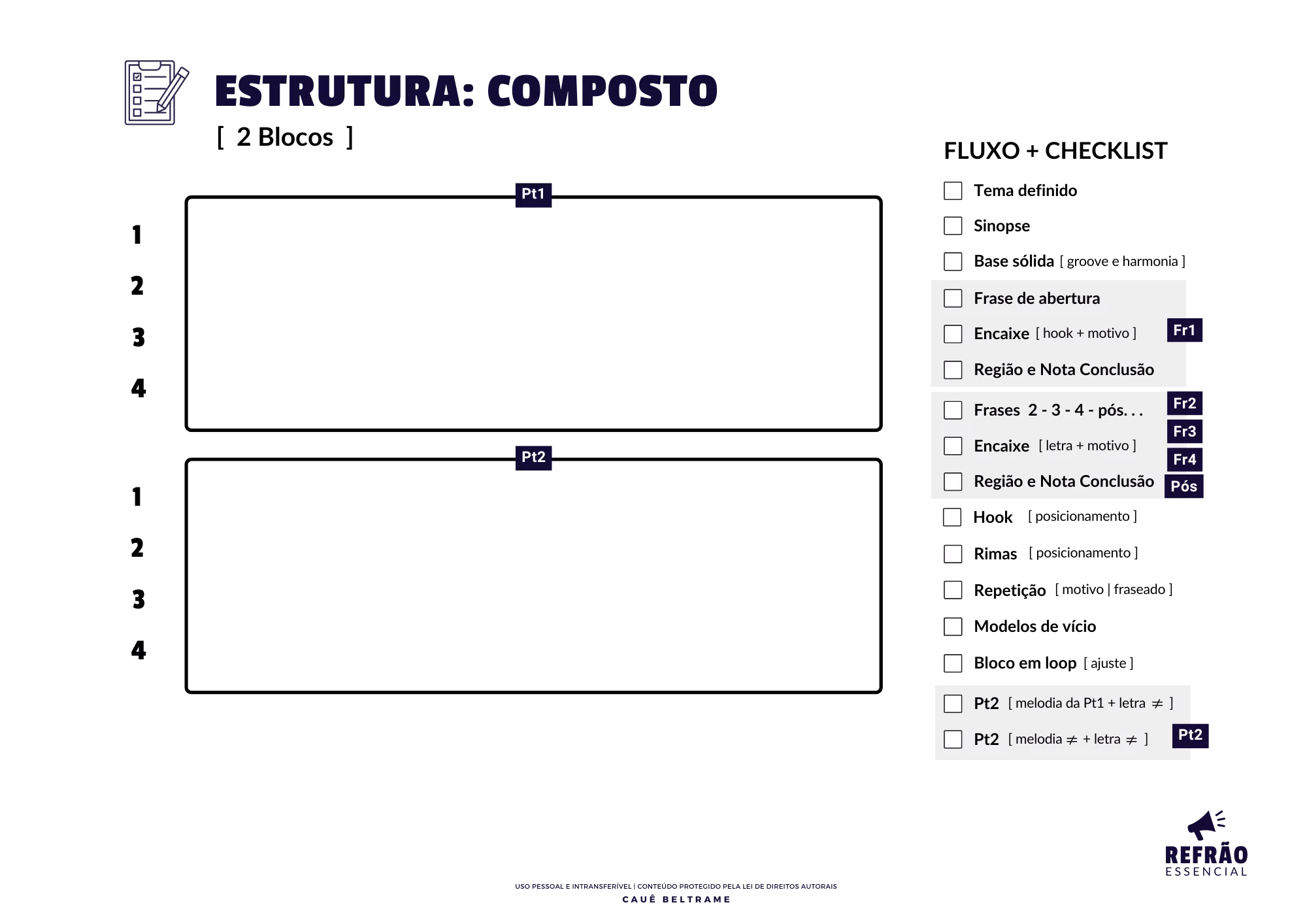 Vai criar refrões de alto impacto seguindo o método com a ajuda dos mapas e checklists de cada uma das estruturas.